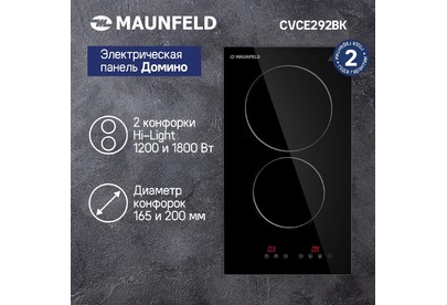 Панель варочная электрическая MAUNFELD Электрическая варочная поверхность CVCE292BK, конфорок: 2 шт., стеклокерамика, независимая,