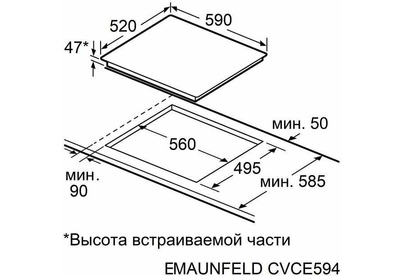 Установка рабочей поверхности: независимая. Материал рабочей поверхности: стеклокерамика. Количество электрических конфорок: 4. Управление: электронное. Мощность подключения: 6. Тип: электрическая. Расположение панели управления: спереди. Общее количество конфорок: 4. Габариты упаковки (ед) ДхШхВ: 0.63x0.57x0.08. Вес упаковки (ед): 4.72. Страна производства: Китай. Гарантия: 24 мес.. Левая дальняя конфорка: мощность 1.8 кВт, размер 200 мм. Правая дальняя конфорка: мощность 1.2 кВт, размер 165 мм. Левая ближняя конфорка: мощность 1.2 кВт, размер 165 мм. Правая ближняя конфорка: мощность 1.8 кВт, размер 200 мм. Цвет: черный. Размеры ниши для встраивания (ШхГxВ): 560x495. Размеры(ШхГхВ): 590х520х48 мм. Тип переключателей: сенсорные. Тип конфорок: Hi-Light. Индикация: выбранной мощности, остаточного тепла. Безопасность: блокировка управления (защита от детей), защитное отключение. Материал поверхности: стеклокерамика. Безопасность: блокировка управления (защита от детей), защитное отключение. Количество конфорок: