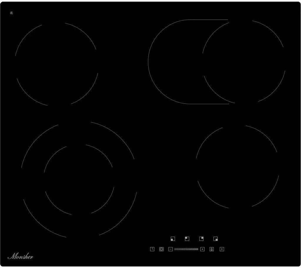 Панель варочная электрическая MONSHER Электрическая варочная поверхность MHE 6013, конфорок: 4 шт., стеклокерамика, независимая, ч