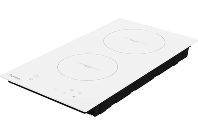 Индукционная варочная панель шириной 30см; Общая мощность 3500 Вт; 2 зоны нагрева: Передняя: 1500 Вт / диаметр 160 мм; Задняя: 2000 Вт / диаметр 180 мм; Сенсорное управление; 9 уровней мощности; Таймер 99 мин; Блокировка от детей; Индикатор остаточного тепла; Автоматическое отключение; Напряжение 220-240 В; Частота 50/60 Гц; Цвет Белый