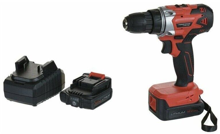 Тип инструмента: Дрель-шуруповерт. Крутящий момент: 27. Количество скоростей: двухскоростной. Число ступеней крутящего момента: 20+1. Наличие функции "сверление": есть. Тип основного патрона: быстрозажимной. Максимальный диаметр сверления (сталь): 10. Максимальный диаметр сверления (дерево): 22. Тип электропитания: от аккумулятора. Емкость аккумулятора: 2. Напряжение аккумулятора: 16. Тип аккумулятора: Li-Ion. Время зарядки, около: 60. Встроенный фонарик: есть. Запасной аккумулятор: в комплекте. Жесткий кейс в комплекте: есть. Особенности: Эргономичная рукоятка с противоскользящим покрытием ERGOgrip. Наличие функции реверса.. Вес товара: 2.6. Комплект поставки: Дрель-шуруповерт, АКБ - 2 шт., ЗУ, кейс, бита.. Бесщеточный двигатель: нет. Аккумулятор: в комплекте. Зарядное устройство: в комплекте. Количество аккумуляторов в комплекте: 2 аккумулятора. Габариты упаковки (ед) ДхШхВ: 0.3x0.28x0.1. Вес упаковки (ед): 2.5. Страна производства: Китай. Блокировка шпинделя: есть. Гарантия: 12 мес.. Число оборотов (для 2