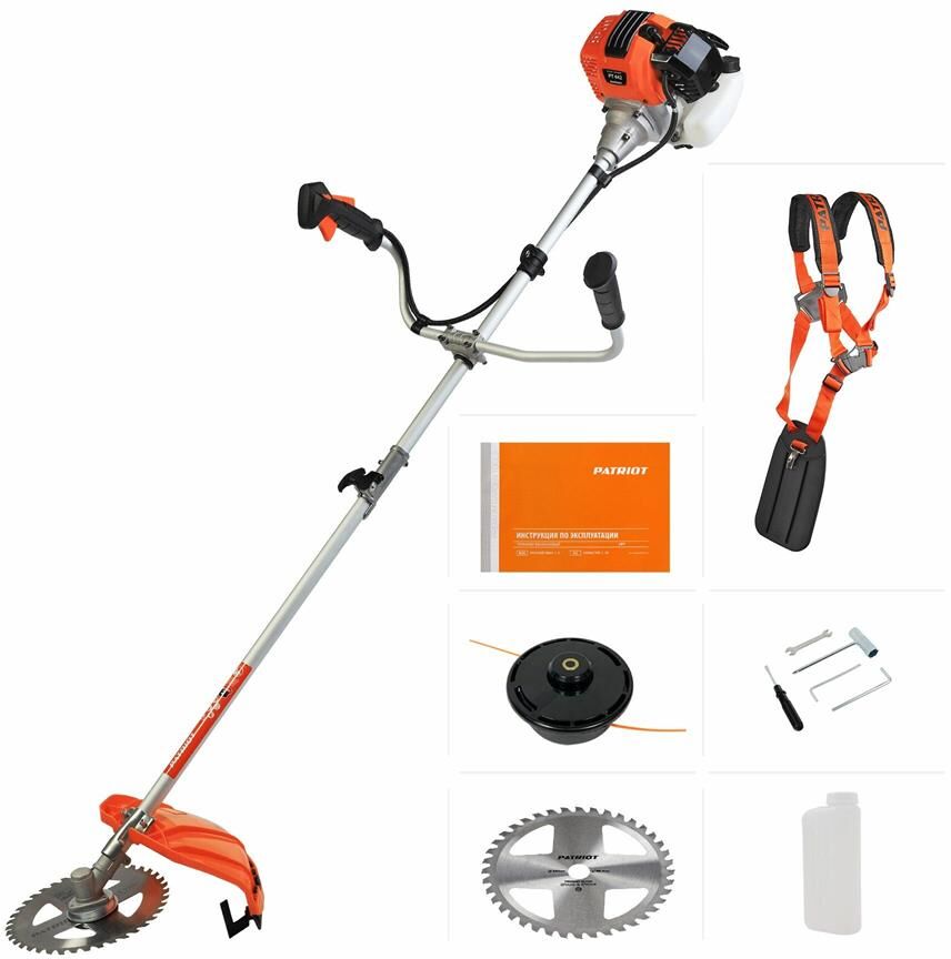 Тип двигателя: бензиновый. Расположение двигателя: верхнее. Форма штанги: прямая. Мощность двигателя (Вт): 900. Объем двигателя: 33. Кол-во тактов двигателя: двухтактный. Емкость топливного бака: 0.7. Режущий элемент: леска и нож. Диаметр круга стрижки: 50. Диаметр используемой лески: 2.4. Размер используемого ножа: 255. Тип крепления триммера: плечевой ремень. Вес товара: 7.3. Комплект поставки: двигатель , штанга, нож, леска, кожух, емкость для топлива, ремень, инструкция. Особенности: Легкий доступ к воздушному фильтру. Удобное управление, вынесенное на рукоятку. Наплечный ремень в комплекте. Трехлопастной нож в комплекте. Сменный режущий инструмент. Хромированный цилиндр.. Мощность двигателя (л.с.): 1.2. Обороты двигателя: 7600. Материал ножа: металл. Тип косильной катушки: полуавтоматическая. Форма рукоятки: U-образная. Антивибрационная система: отсутствует. Тип штанги: неразборная штанга. Посадочный диаметр диска: 25.4. Гарантия: 24 мес.. Вес: 7.3 кг. Двигатель: бензиновый, 1.2 л.с., двухтактный, распол