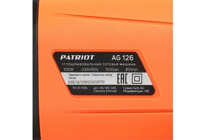 PATRIOT 110301126 AG 126, тонкий корпус, пылезащищенная. Вт, Диск 125 мм