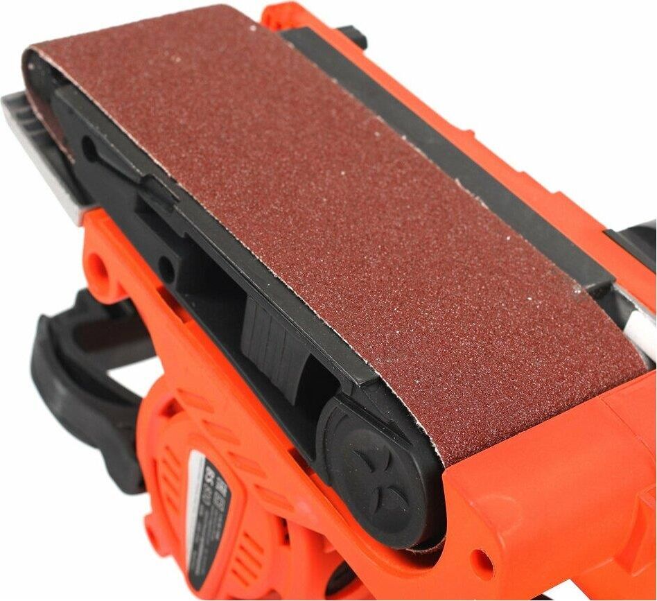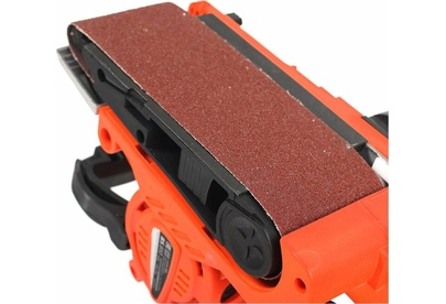 Линейная скорость полировальной ленты, м/мин 200-380, Размер полировальной ленты, мм 533х76, Шлифовальная поверхность, мм 76х130, Потребляемая мощность, Вт 900, Регулировка частоты вращения, Фиксатор продолжительной работы, Прорезиненная рукоятка, Прорезиненный морозостойкий кабель.