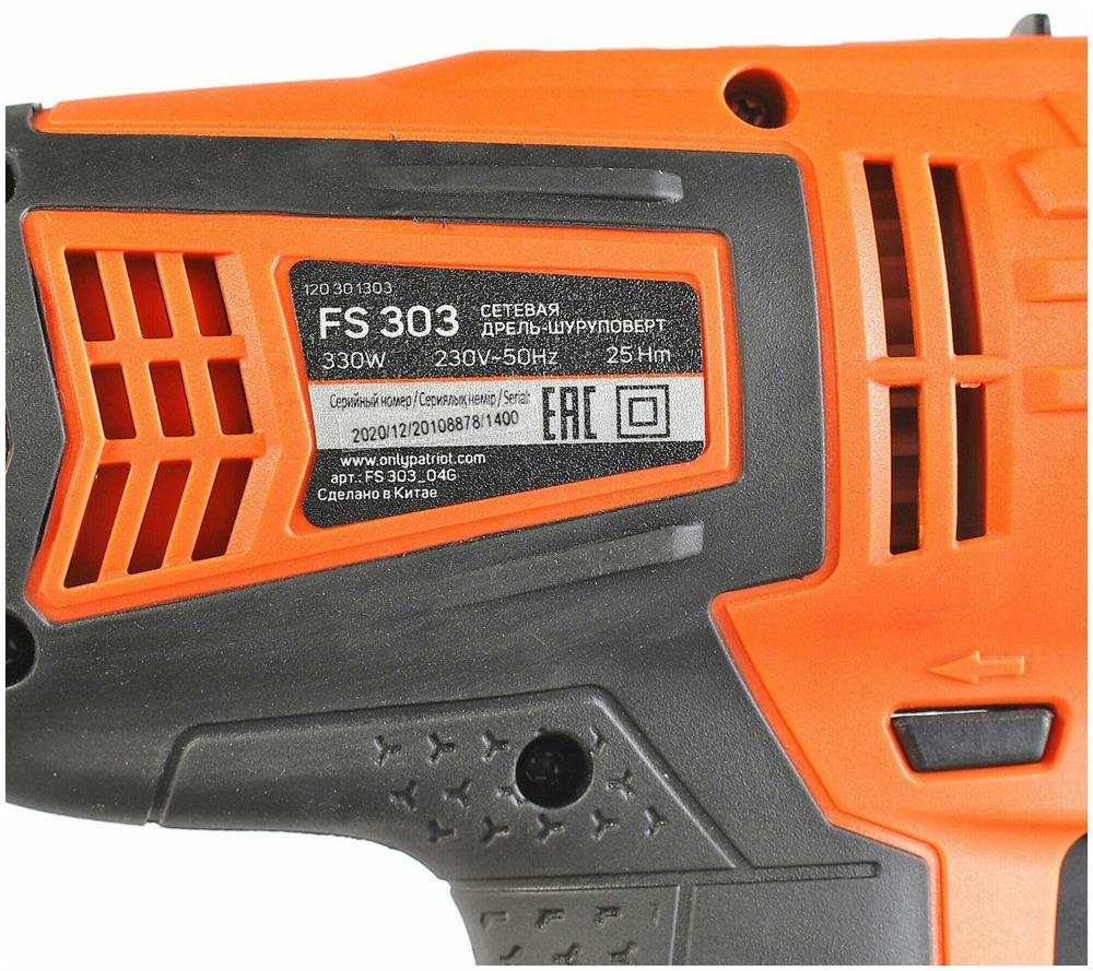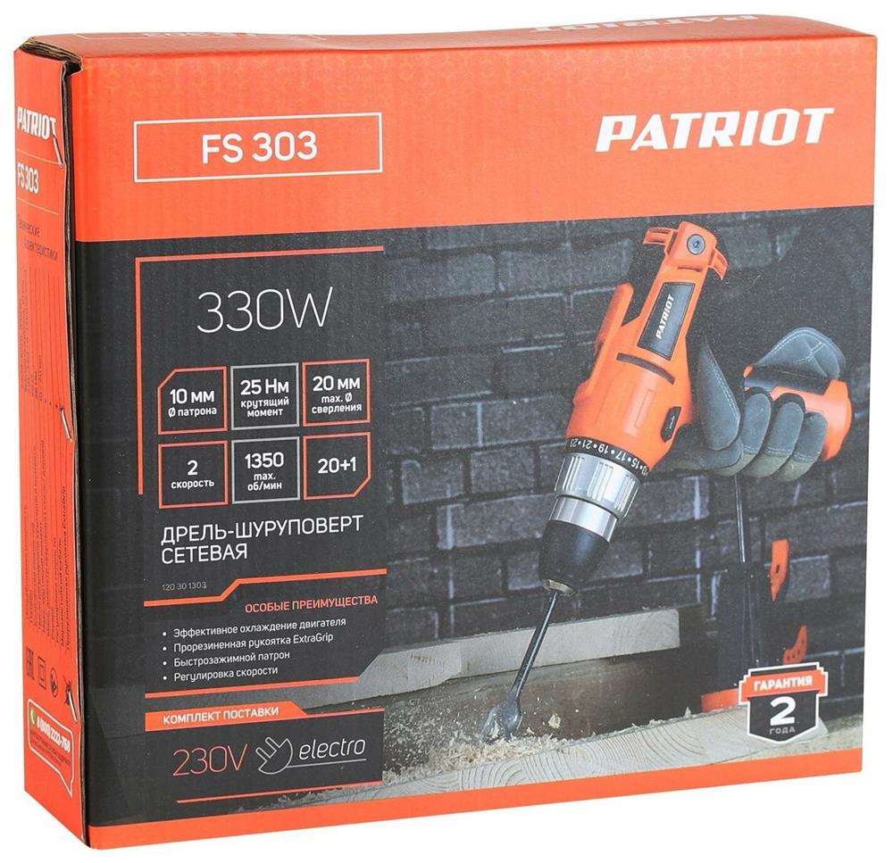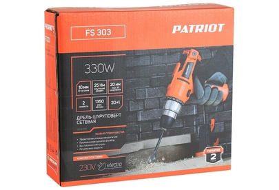 PATRIOT 120301303 Дрель-шуруповерт сетевая FS 303, 2 скор., мощность 330Вт, макс. крутящий момент 25