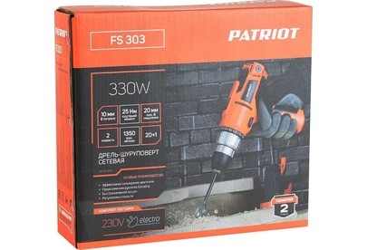 PATRIOT 120301303 Дрель-шуруповерт сетевая FS 303, 2 скор., мощность 330Вт, макс. крутящий момент 25