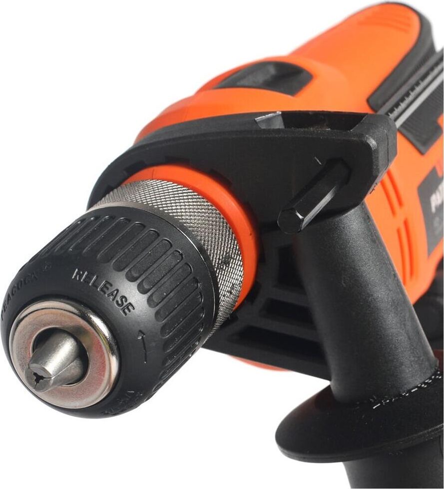 Макс. количество ударов, уд/мин 44800, Частота вращения, об/мин 0-2800, Макс. диаметр сверления (металл/бетон/дерево), мм 13/13/25, Тип патрона быстрозажимной, Диаметр патрона, мм 13, Регулировка скорости, положений, Потребляемая мощность, Вт 710, Наличие реверса, Режим сверления с ударом, Защита от пыли, Прорезиненная рукоятка, Прорезиненный морозостойкий кабель.
