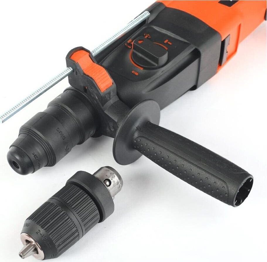 Макс. количество ударов, уд/мин 5500 Частота вращения, об/мин 0-1300, Количество режимов работы 3, Сила удара, Дж 2.9, Макс. диаметр сверления в бетоне, мм 26, Тип патрона SDS+/QCC, Потребляемая мощность, Вт 820, Наличие реверса, Система защиты оператора, Защита от пыли, Прорезиненная рукоятка, Прорезиненный морозостойкий кабель,
