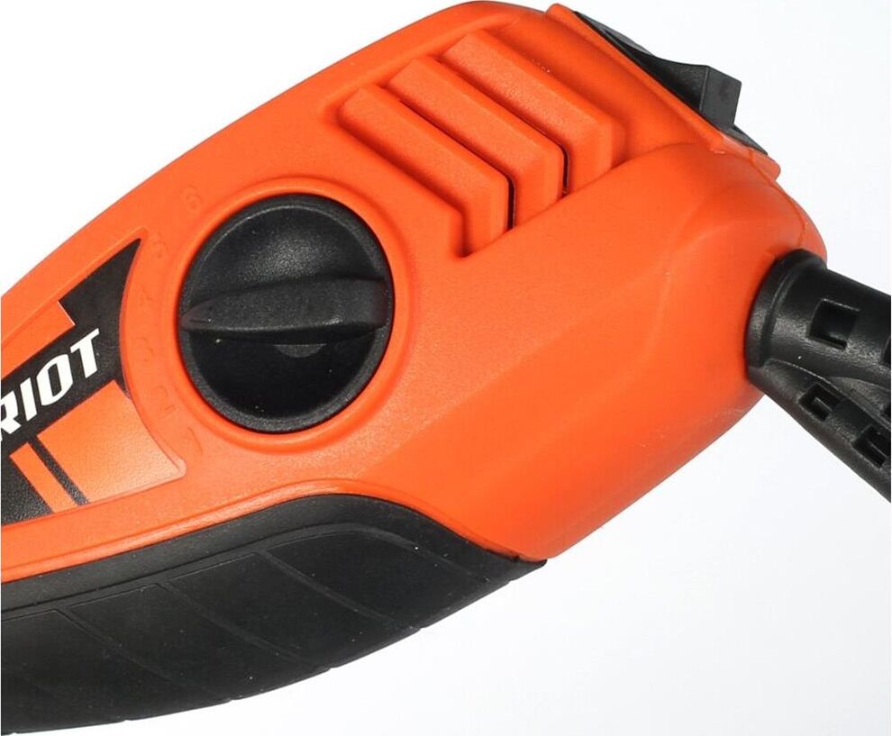 Напряжение 220 В, Потребляемая мощность 50 Вт, Тип патрона цанга, Число оборотов 7200 об/мин, Режимы работы 6, Прорезиненная рукоятка ExtraGrip+Прорезиненный морозостойкий кабель+Система быстрой замены щеток, Габариты 240x55x105 мм, Вес 0,38 кг.