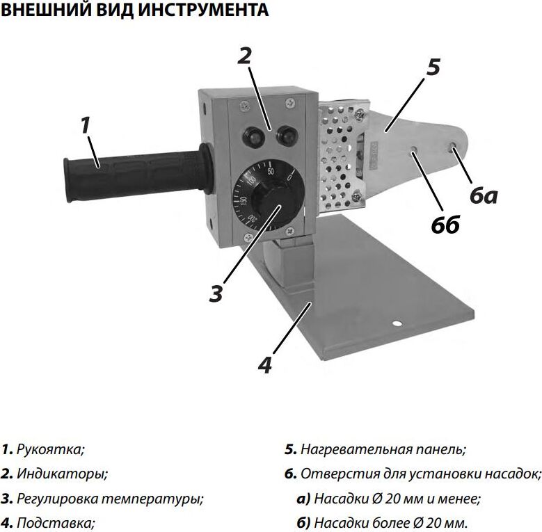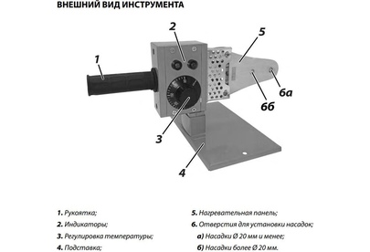 Диаметр наконечника, мм 20/25/32, Потребляемая мощность, Вт 600, Температура нагрева, °С 0-300, Регулировка температуры плавная, Тип сварки муфтовая (раструбная), Нагревательный элемент, шт 1, Прорезиненный морозостойкий кабель.