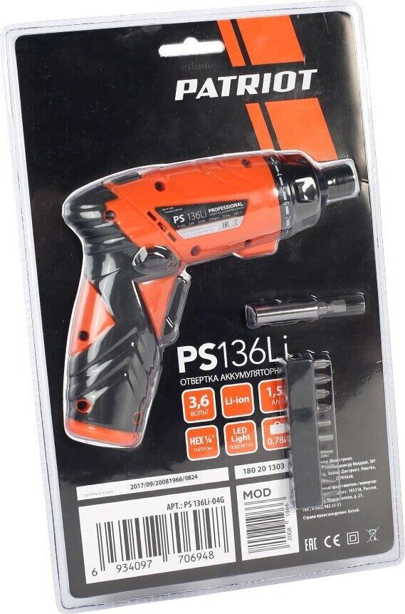 PATRIOT 180201303 PS 136 Отвертки аккумуляторные Patriot Professional