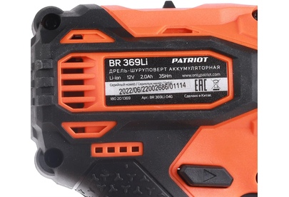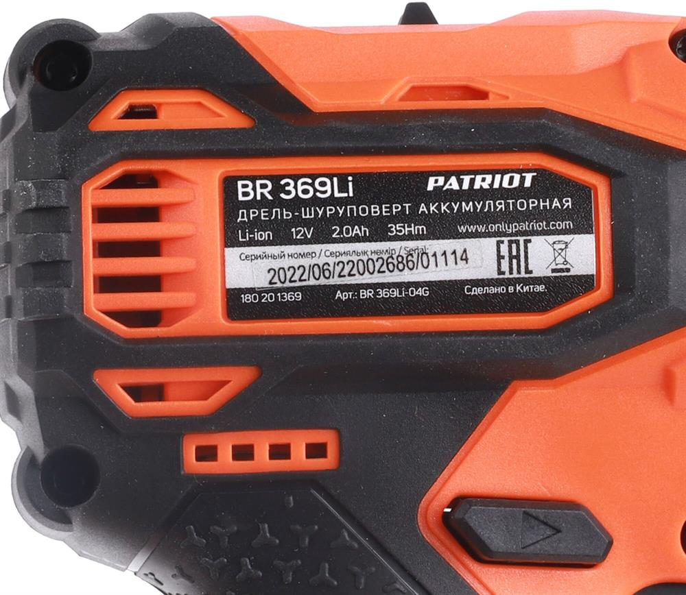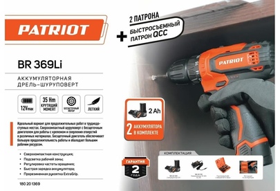 PATRIOT 180201369 BR 369Li, две АКБ Li-Ion, 12В, 2,0 Ач, 35Нм, Съемный патрон, 1/4 HEX, 2 скорости,