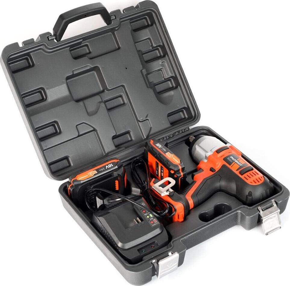 Напряжение аккумулятора, В 18. Тип аккумулятора Li-on. Емкость аккумулятора, А*ч 2. Макс. крутящий момент, Нм 450. Макс. количество ударов, уд/мин 3200. Частота вращения, об/мин 0-2000. Режим удара . Наличие реверса . Регулировка частоты вращения . Наличие подсветки . Быстрая зарядка.Индикатор заряда батареи . Система защиты аккумулятора BSC . Количество аккумуляторов в комплекте, шт 2.
