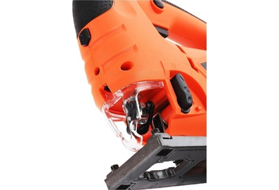 лазерный маркер, обрезиненная рукоятка, защитный щиток, возможность подключения пылесоса, быстрозажимное крепление пилки