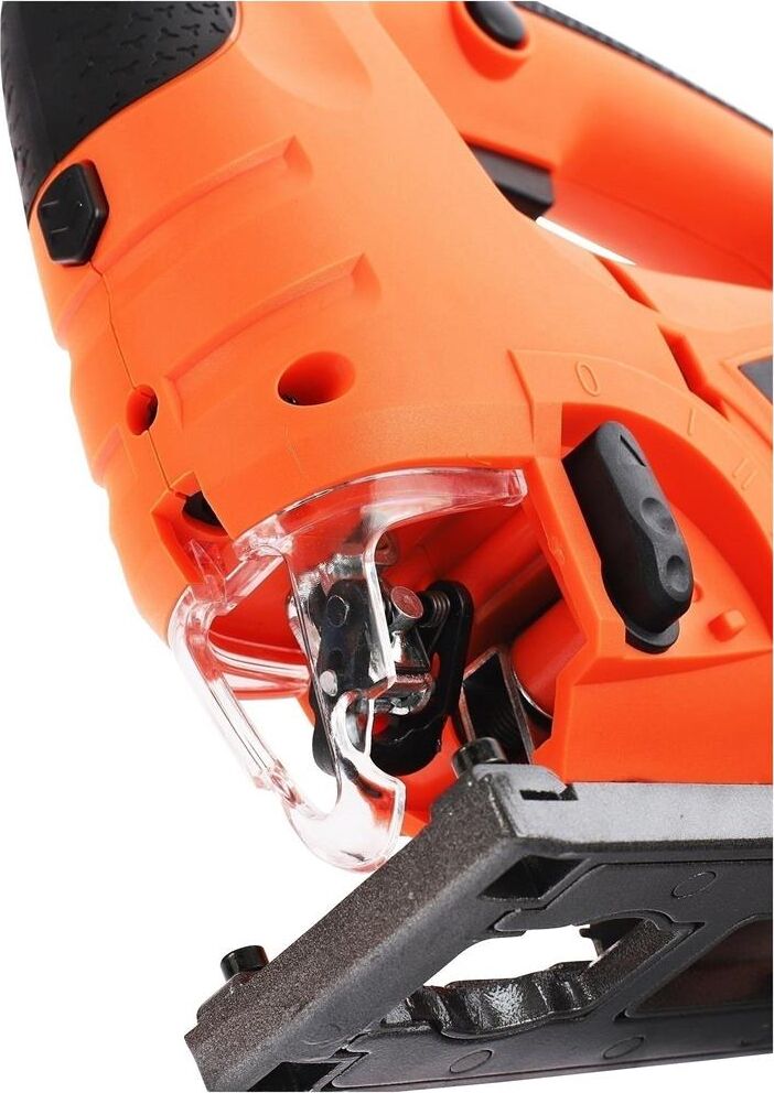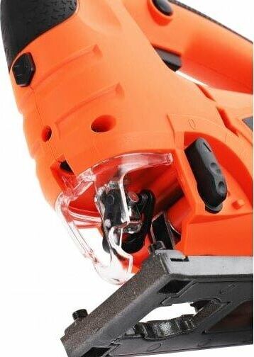 лазерный маркер, обрезиненная рукоятка, защитный щиток, возможность подключения пылесоса, быстрозажимное крепление пилки