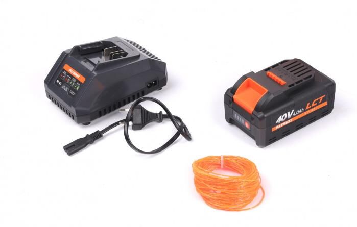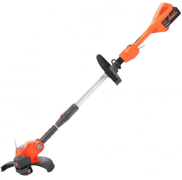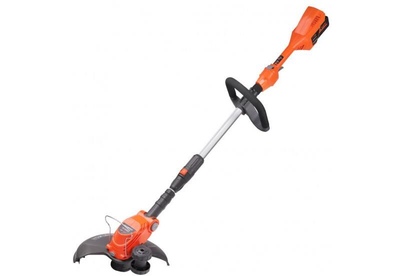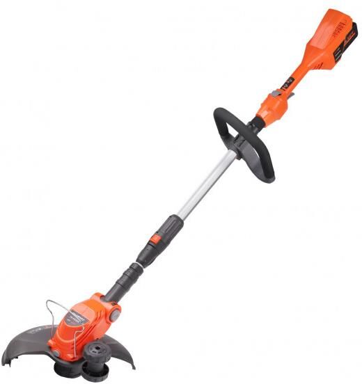 Ширина скашивания травы, мм 300 Ширина скашивания леской, мм 300 Ширина скашивания ножом, мм нет Диаметр режущей лески, мм 1,6 Рекомендуемая площадь обработки, м? 300 Тип рукоятки D-образная Тип штанги регулируемая по высоте Регулировка высоты ручки есть Приводной вал без приводного вала Форма штанги прямая Режущий элемент леска Тип ремня нет Расположение двигателя нижнее Частота вращения, об/мин 7000 Тип двигателя коллекторный Напряжение аккумулятора, В 40 Емкость аккумулятора, А*ч 4 Тип аккумулятора Li-ion Время работы на одном заряде до 50 минут Время зарядки аккумулятора до 2 часов Аккумулятор и ЗУ в комплекте один АКБ и ЗУ Уровень шума при работе, дБ 96