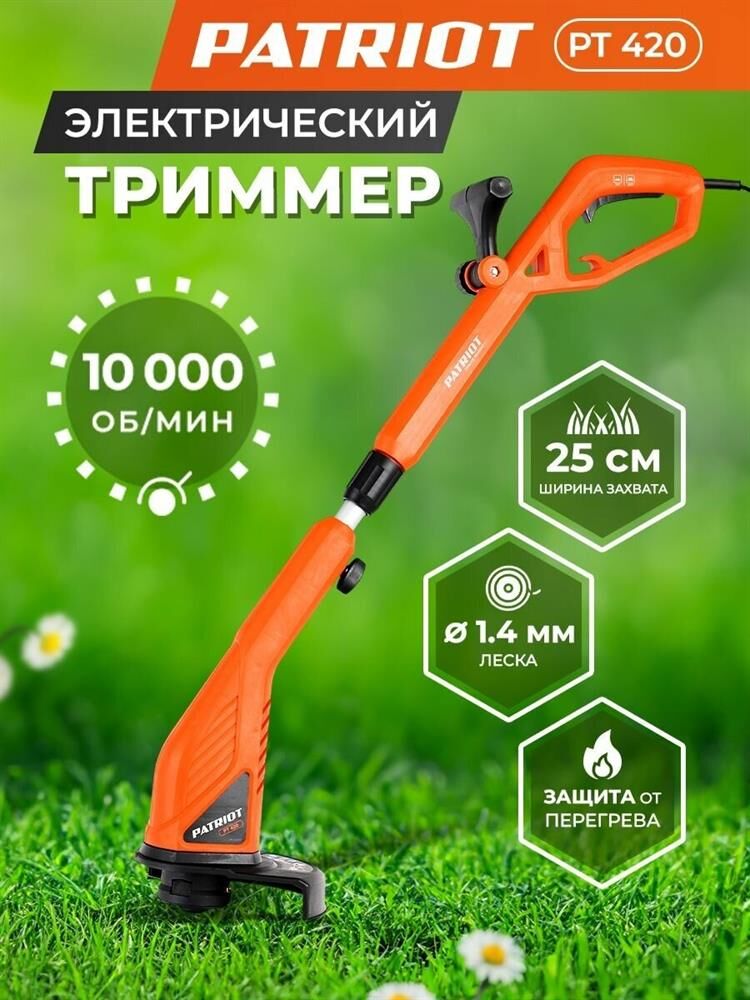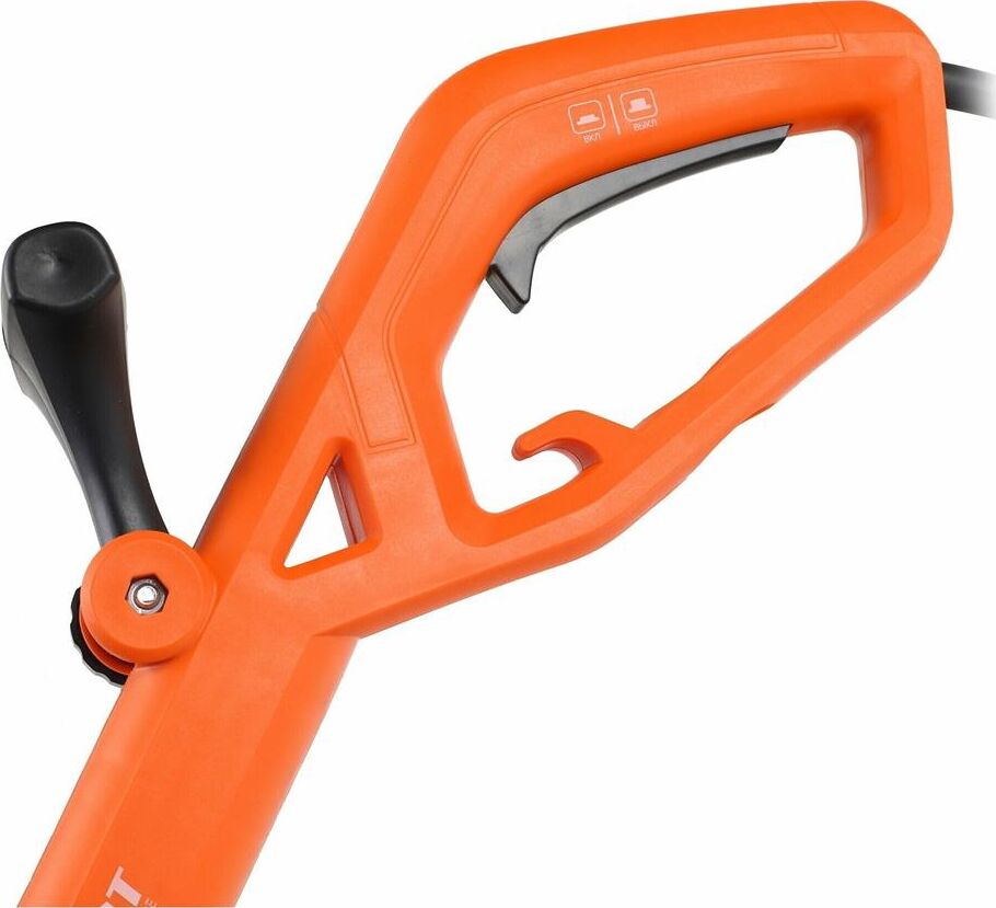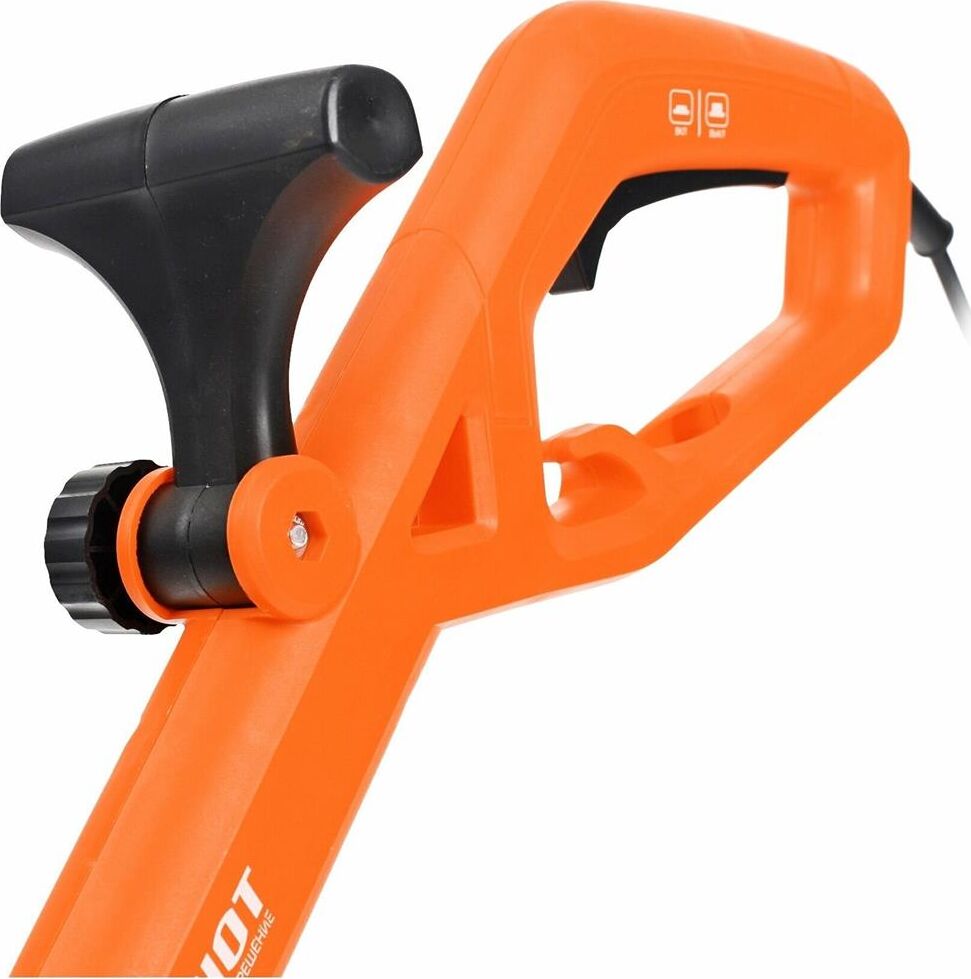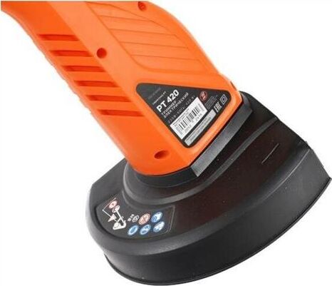 Ширина скашивания, см 25. Частота вращения, об/мин 10000. Режущий элемент леска. Диаметр режущей лески, мм 1,4. Мощность двигателя, кВт 0,42. Тип двигателя электрический. Тип рукоятки D-образная. Тип штанги регулируемая. Расположение двигателя нижнее. Вес, кг 2.24.