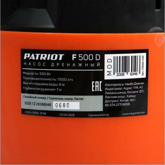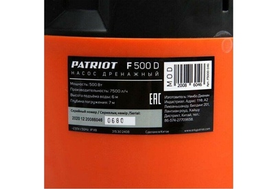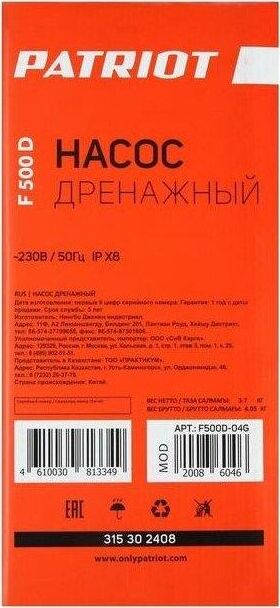 PATRIOT 315302408 F 500 D Погружные дренажные и скважинные насосы