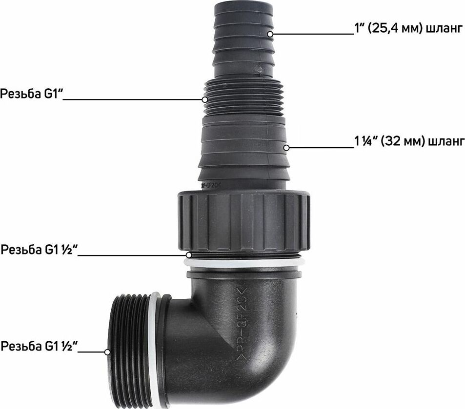 диаметр выводного патрубка: ступенчатый 1, 1 1/4, 1 1/2