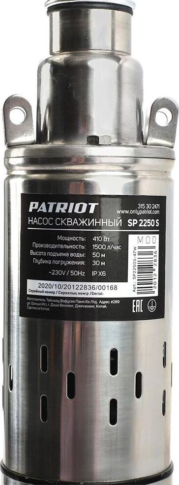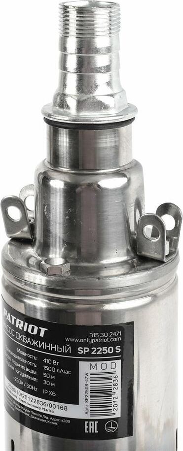 PATRIOT 315302471 SP 2250 S Насос скважинный винтовой, 75 мм диаметр, 400 вт, 1500 л/ч.