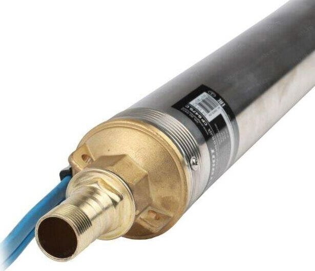 Узкий насос для скважин 75 мм. Винтовой Мощность: 400 Вт, напряжение: 220 В, производительность: 1500 л/час, высота подъема: 50 м, глубина погружения: 30 м, материал соединения и головы насоса: нержавеющая сталь, кабель: 20 м, диаметр насоса: 75 мм.