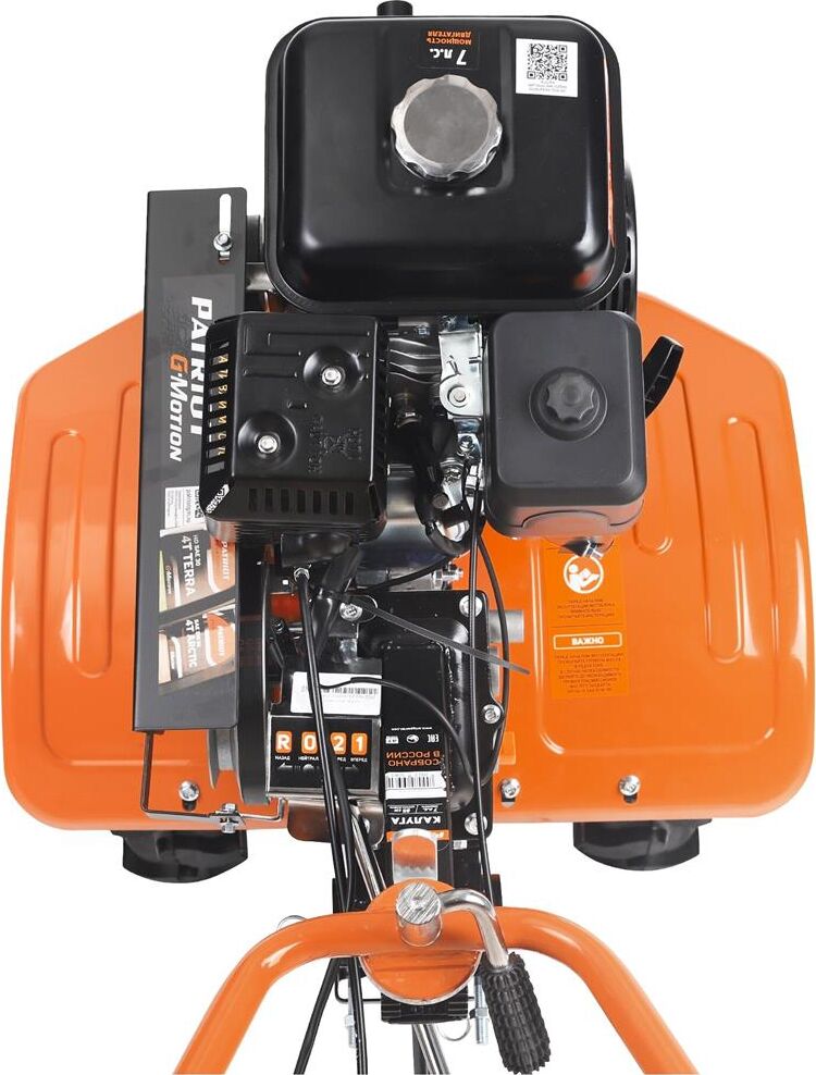 Cкорость передвижения, км/час 2-12. Ширина обработки, см 90. Глубина обработки, мм 300. Количество передач 4 вперед/2 назад. Мощность двигателя, л.с. 7. Объем двигателя, см3 208. Объем топливного бака, л 3,6. Объем масляного картера, л 0.6. Объем картера редуктора, л 1.2. Частота вращения, об/мин 3600. Диаметр колес, мм 400. Диаметр фрез, мм 100. Механизм сцепления клиноременное, путем нажатия ремня роликом. Ступица 23 мм. Приводной ремень 17-950Li. Пневматические колеса PATRIOT P4.00-8D-1. Двигатель 170 FА. Тип двигателя 4-х тактный бензиновый. Тип топлива бензин АИ-92.