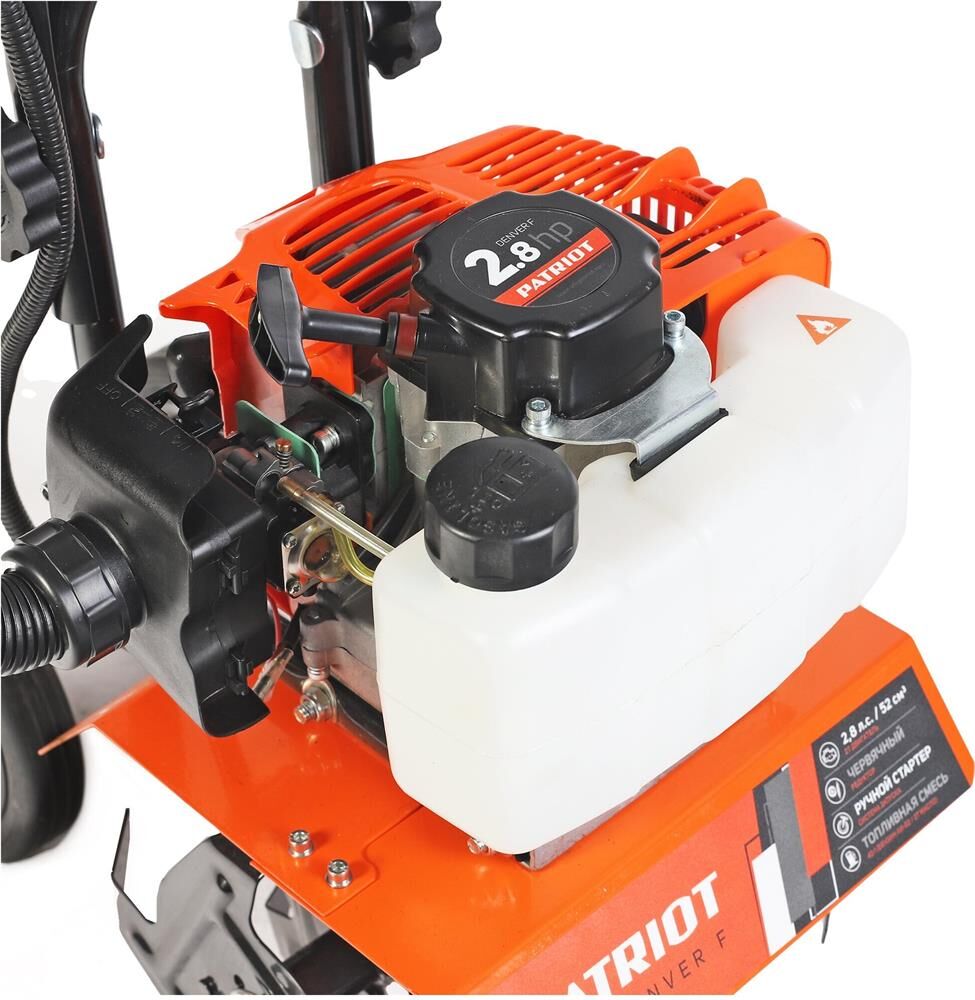 Ширина обработки, см 24. Глубина обработки, мм до 110/220. Количество передач 1 вперед. Мощность двигателя, л.с. 2.8. Объем двигателя, см3- 52. Объем топливного бака, л 1,2. Диаметр колес, мм 120. Диаметр фрез, мм 220. Тип двигателя 2-х тактный бензиновый. Тип топлива смесь 40: 1 (бензин АИ-92 + масло Patriot G-Motion). Редуктор червячный. Габариты упаковки, cм 43,5х31,5х50. Гарантия 2 года. Вес с упаковкой, кг 16.88.