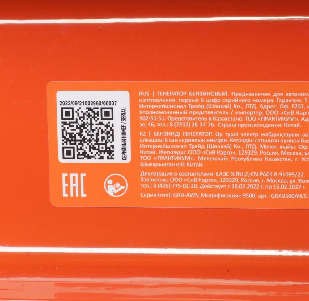 PATRIOT 472102195 Генератор бензиновый GRA 9500AWS