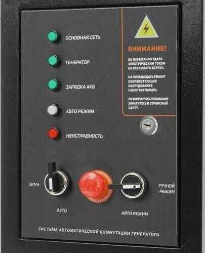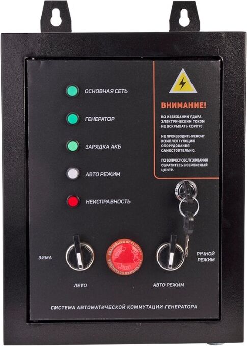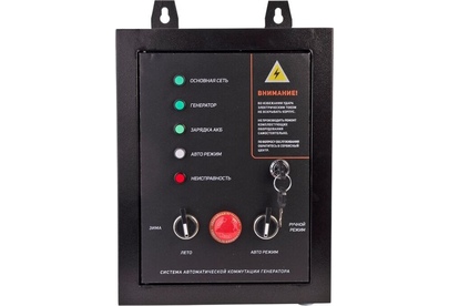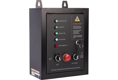 Система выполняет следующие функции: осуществляет постоянный контроль сетевого напряжения, производит запуск генераторной установки в случае отключения сетевого напряжения, переключает силовой контактор на питание потребителей от генератора, переключает силовой контактор на питание потребителей от сети при появлении сетевого напряжения, производит остановку генератора при стабильно-восстановленном сетевом напряжении, производит постоянную подзарядку батареи генератора.