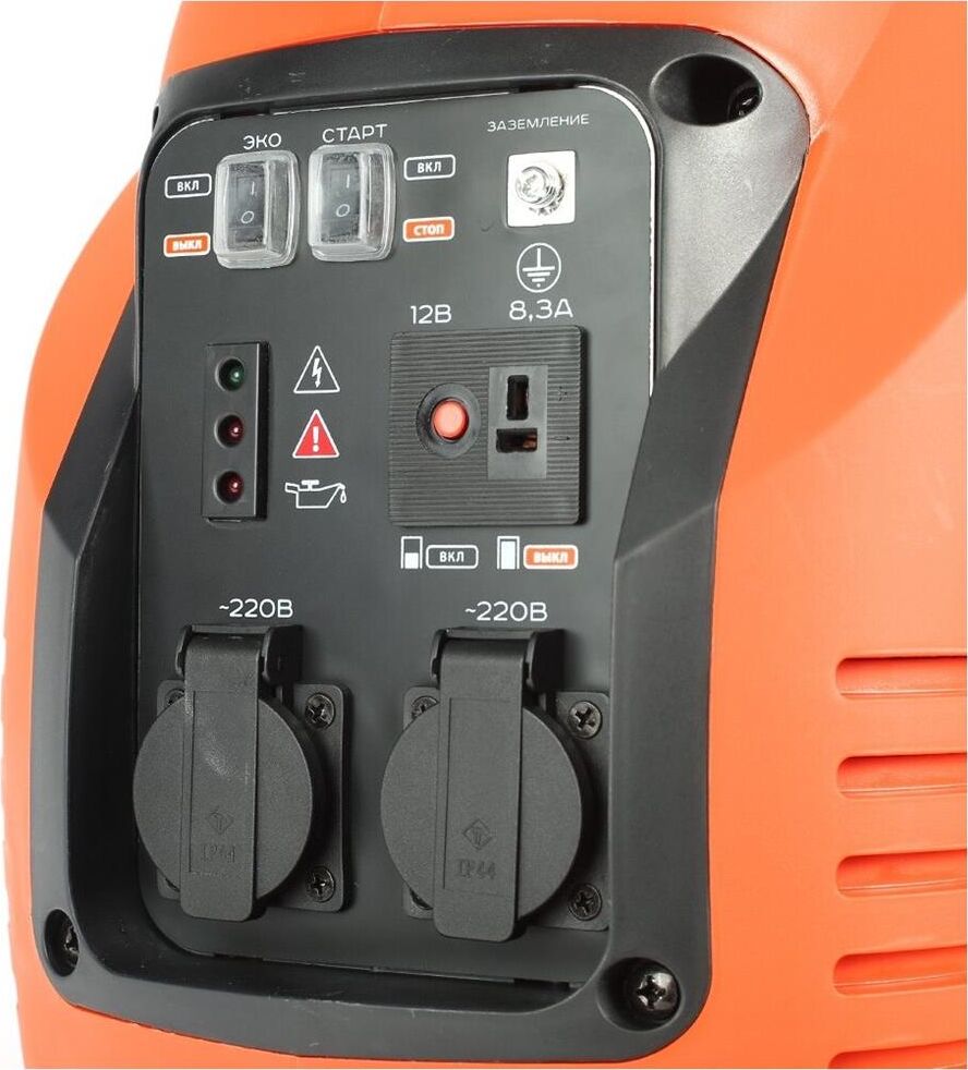 Объем двигателя, см3 125, Тип топлива АИ-92, Объём бака, л 5,7, Тактность двигателя 4-х тактный, Номинальное напряжение, В 220, Мощность ном/макс, кВт 2.2/2.5, Расход топлива, г/кВт 500, Уровень шума, dB 60, Стартер ручной, Розетки 2 евро 16A, Выход на 12B.
