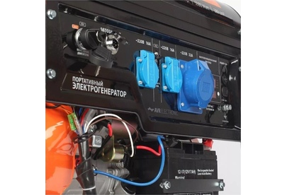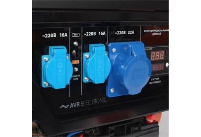Объем двигателя, см3 389, Макс. мощность, л.с. 13, Тип топлива АИ-92, Объём бака, л 25, Тактность двигателя 4-х тактный, Номинальное напряжение, В 220, Мощность ном/макс, кВт 5.0/5.5, Расход топлива, г/кВт 440, Уровень шума, dB 78, Стартер ручной/электро/автозапуск +АКБ, Вольтметр электронный мультидисплей, Розетки 2 евро 16А, 1 евро 32А, Комплект для транспортировки опция, Выход на 12B .