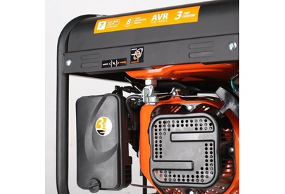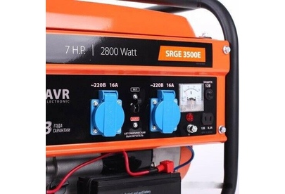 Объем двигателя, см3 210, Макс. мощность, л.с. 7, Тип топлива АИ-92, Объём бака, л 15, Тактность двигателя 4-х тактный, Номинальное напряжение, В 220, Мощность ном/макс, кВт 2.5/2.8, Расход топлива, г/кВт 500, Уровень шума, dB 78, Стартер ручной/электро +АКБ, Вольтметр стрелочный, Розетки 2 евро 16А, Выход на 12B.