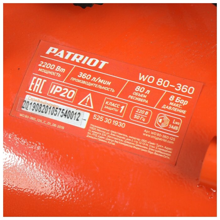 PATRIOT 525301930 WO 80-360 Компрессор поршневой безмасляный