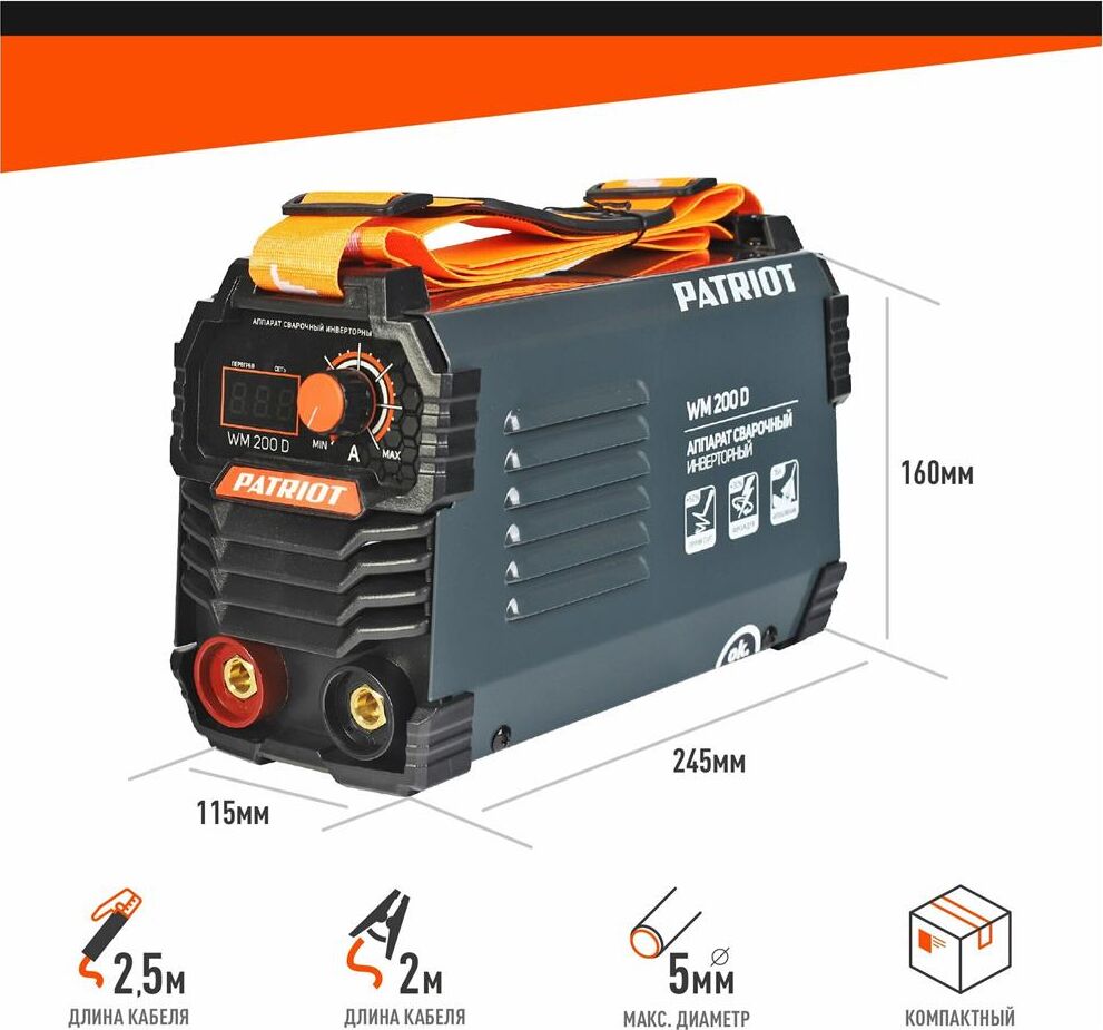 Макс. мощность, кВт 9,1. Входное напряжение, В 230. Сварочный ток ММА, А 20-200. Рабочее напряжение ММА, В 20,4-26,4. Напряжение холостого хода, В 76. Мин. входное напряжение, В 140. ПВ при макс. токе, % 70. Диаметр электрода, мм 1,6/5,0. Антизалипание Да. Форсаж дуги Да. Цифрововой дисплей Да. Наличие сетевой вилки Да. Класс защиты IP 21. Класс электроизоляции H. Габаритные размеры, cм 24,5х11,5х16. Вес эксплуатационный, кг 4.4.
