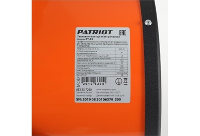 PATRIOT 633307260 PT-R 3 Тепловентилятор электрический 230В, нерж.ТЭН, шнур с евровилкой.