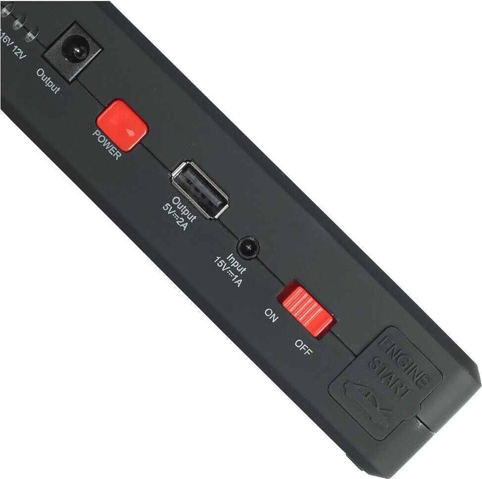 Запуск бензиновых двигателей объемом до 4л., Запуск дизельных двигателей объемом до 3л., Зарядка мобильных телефонов и других устройств от USB., Поддержка работы ноутбуков, автомобильных устройств., Незаменимый помощник на даче, в командировке, в путешествии, на рыбалке.