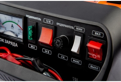 Устройство для бытового полупрофессионального или профессионального использования. Предназначено для зарядки свинцовых, кислотных аккумуляторов напряжением 12В и 24В. Ускоренный режим зарядки с повышенным током. Устройство высокого качества, удобно в использовании, оснащено переключателем напряжения тока, амперметром, защитой от перегрузки, неправильной полярности, короткого замыкания. Отсек для хранения проводов.
