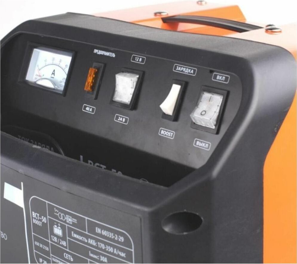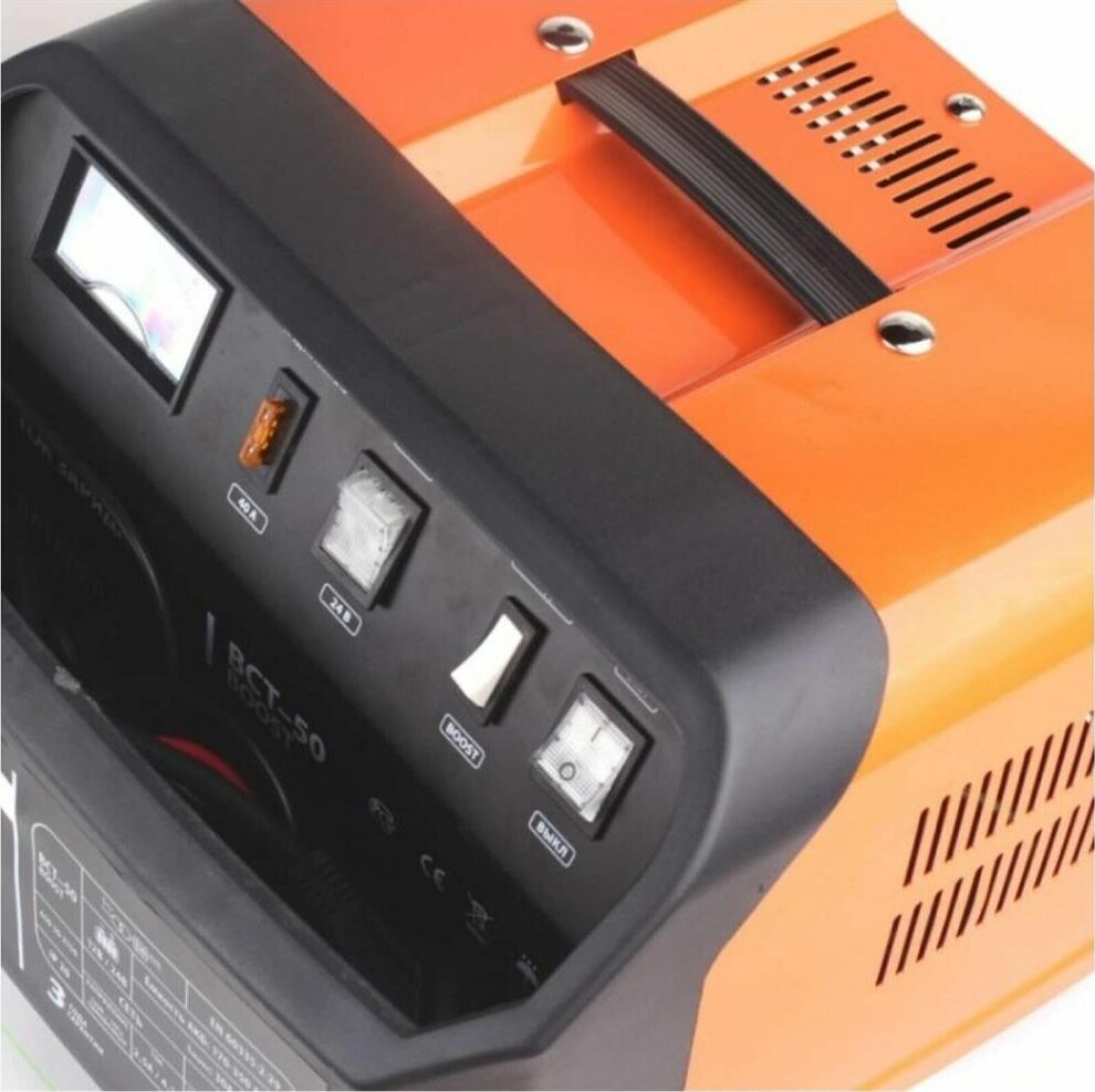 Устройство для бытового полупрофессионального или профессионального использования. Предназначено для зарядки свинцовых, кислотных аккумуляторов напряжением 12В и 24В. Ускоренный режим зарядки с повышенным током. Устройство высокого качества, удобно в использовании, оснащено переключателем напряжения тока, амперметром, защитой от перегрузки, неправильной полярности, короткого замыкания. Отсек для хранения проводов.
