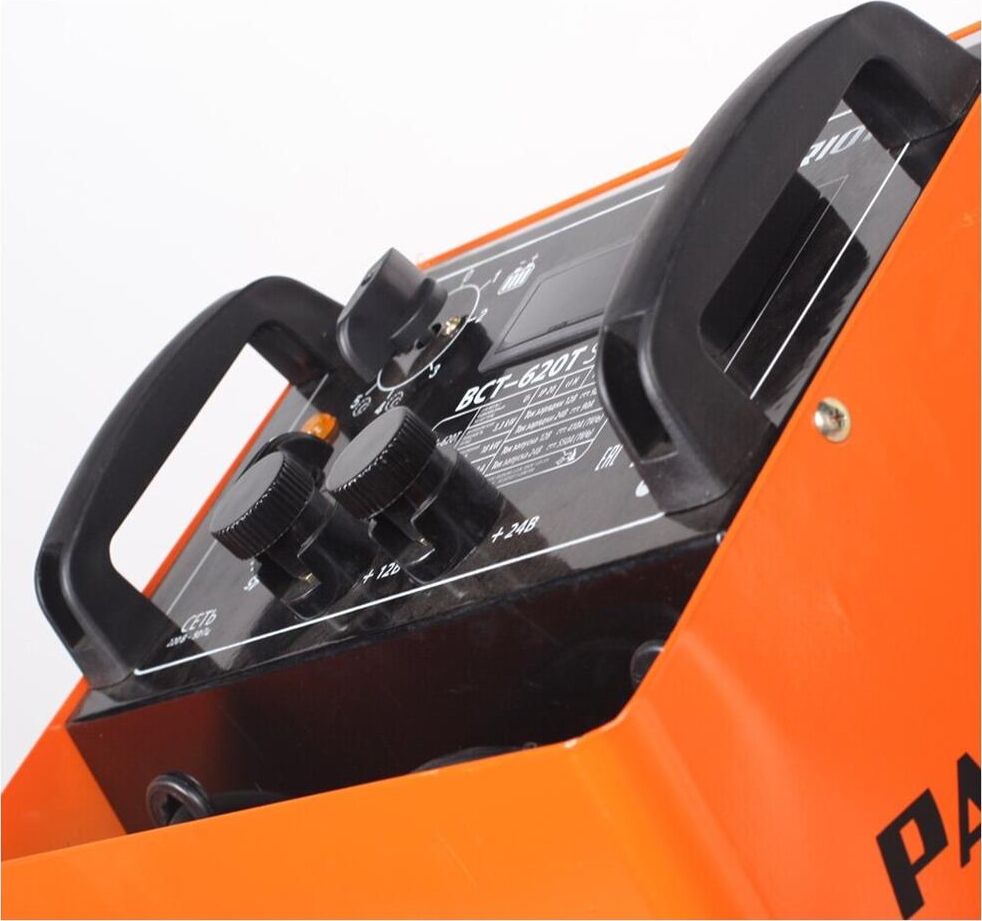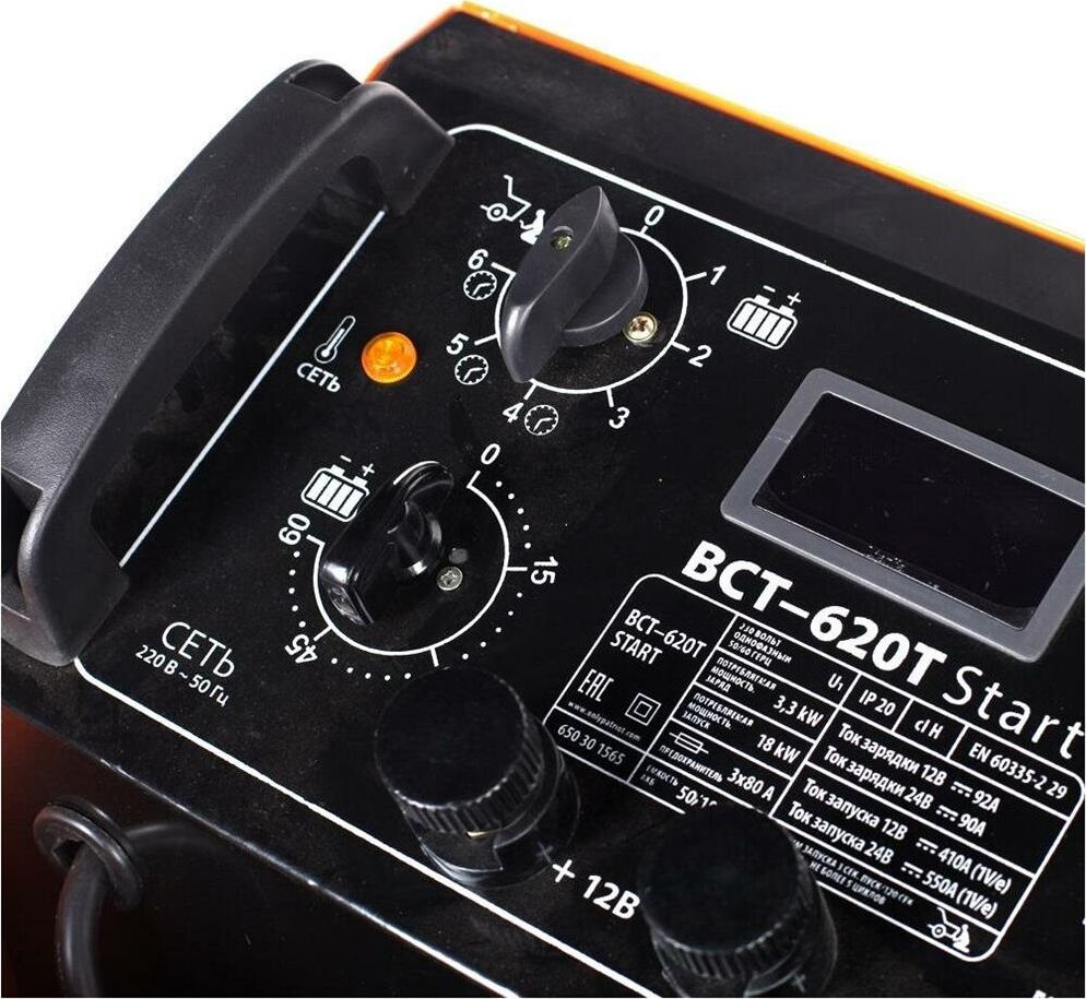 Устройство для бытового, полупрофессионального или профессионального использования. Предназначено для зарядки свинцовых, кислотных аккумуляторов напряжением 12В и 24В, облегчения запуска автомобиля в холодную погоду. 6 ступеней зарядки тока. Ускоренный режим зарядки с повышенным током. Таймер отключения. Амперметр, колеса для транспортировки, защита от перегрузки, неправильной полярности, короткого замыкания.