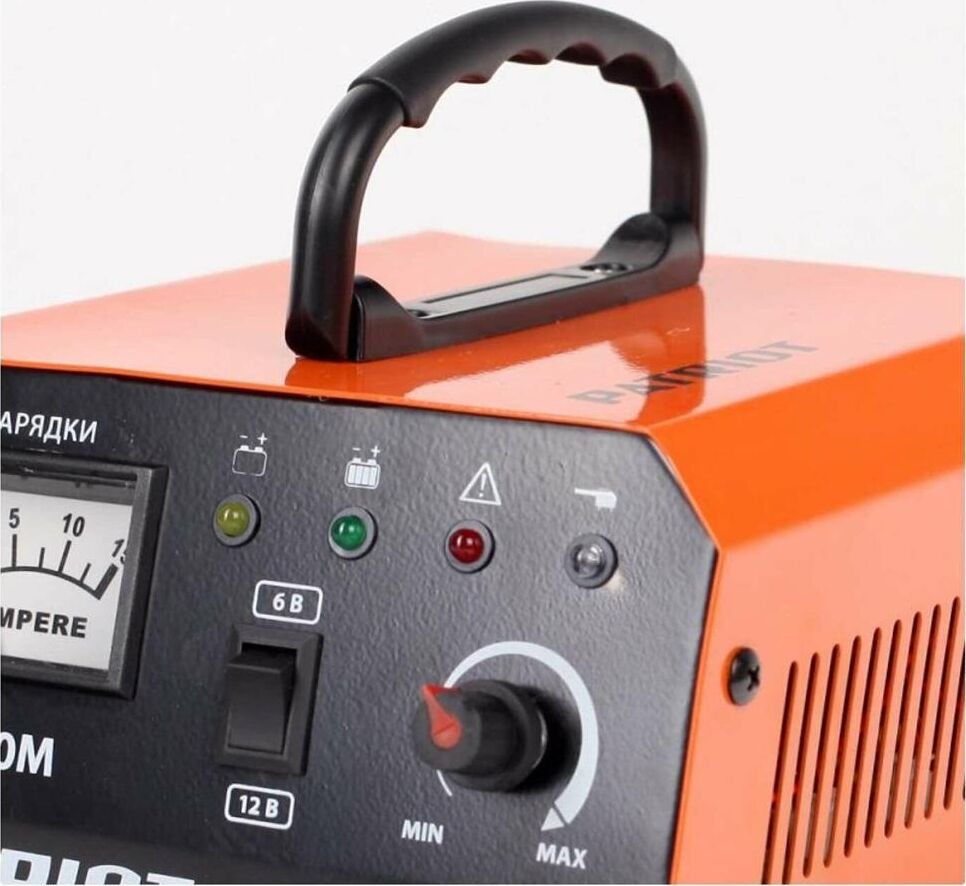 Зарядное устройство PATRIOT BCI-10M Возможность зарядки всех типов аккумуляторных батарей (WET, AGM, GEL) как стартовых, так и тяговых, и для ИБП. Контроль напряжения исключает перезаряд и «кипение» батареи. Емкость батарей, А*ч 10-150, Ток зарядки макс., А 10, Режим сохранения заряда, Макс. потребляемая мощность, кВт 0,4, Напряжение зарядка, В/А 12/6, Регулятор ограничения тока заряда, Входное напряжение, В 220, Автоматическое управление.