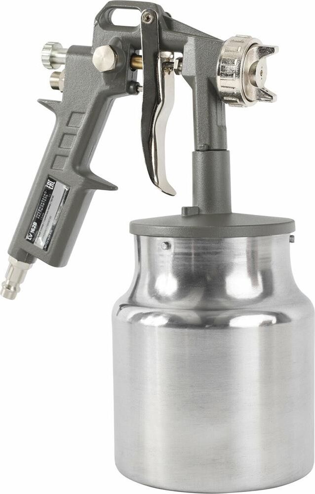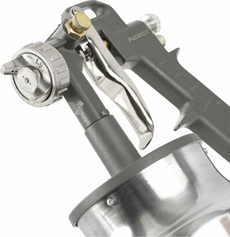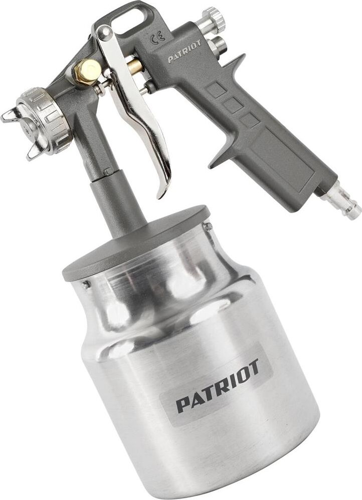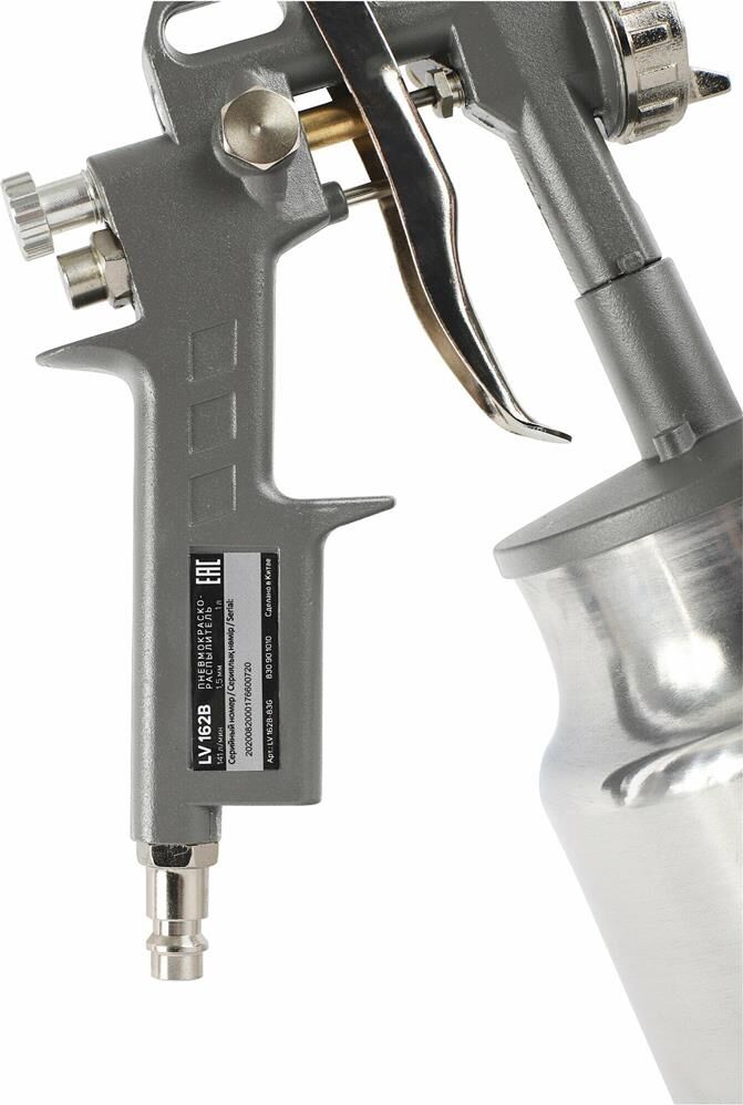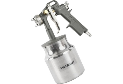 Пневмокраскораспылитель PATRIOT LV 162В, Расход воздуха: 400 л/мин; Объем бачка для краски: 1 л. нижний; Давление: 3.0-4.0 бар; Диаметр сопла: 1,5 мм; Ширина факела: 120-220 мм; Соединение: быстросъем.