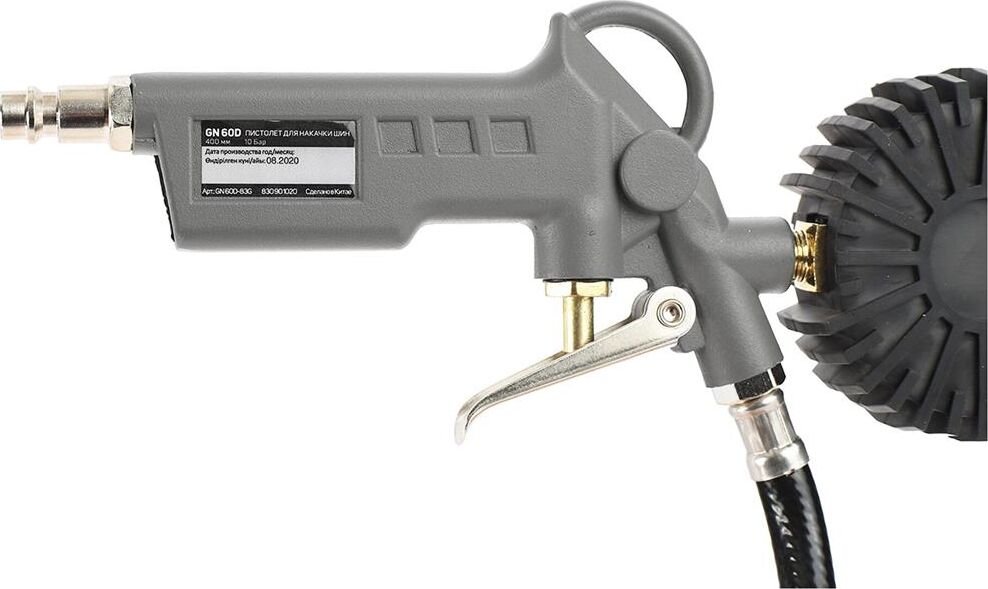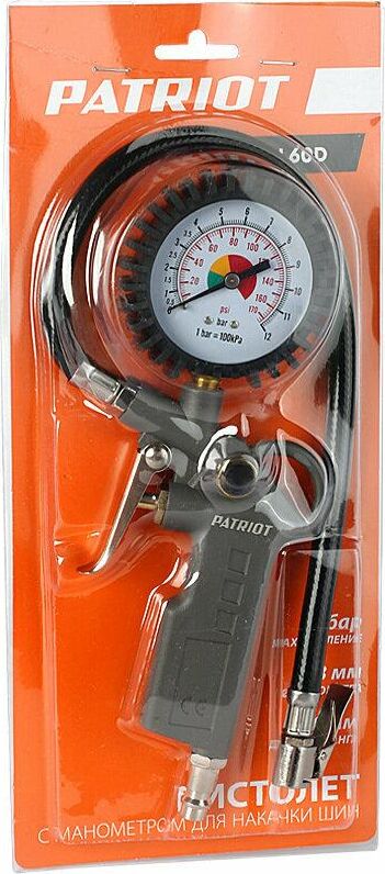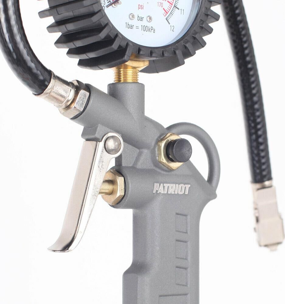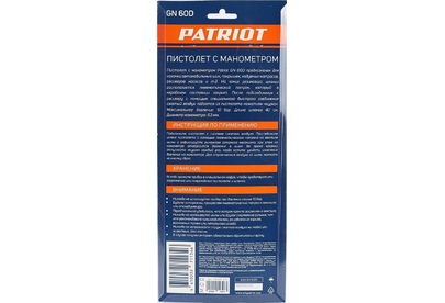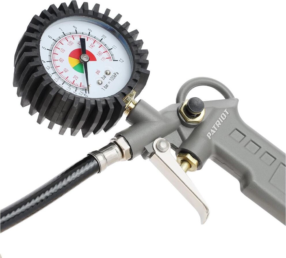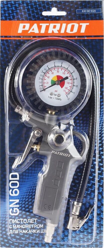 Пистолет для накачки шин PATRIOT GN 60D, Максимальное давление: 10 бар; Длина шланга: 360 мм; Диаметр манометра: 63 мм; Соединение: быстросъем.