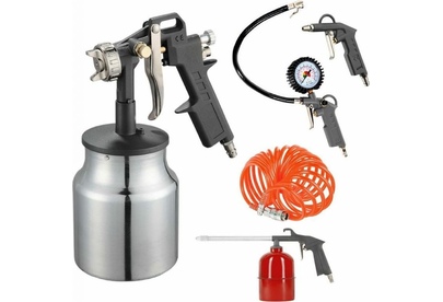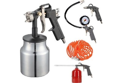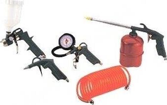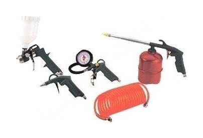 краскопульт с нижним бочком, продувочный пистолет, пистолет для накачки шин, промывочный пистолет, спиральный шланг 5м.