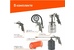 сопло краскопульта - 1,5 мм., расход воздуха: пистолет для накачки шин - до 400 л/мин., промывочный пистолет - до 450 л/мин., давление: пистолет для накачки шин - до 10 бар, промывочный пистолет - до 8 бар