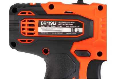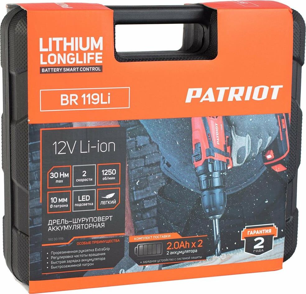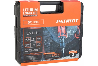 PATRIOT BR 119LI, 12В, 2,0Ач, (металл/бетон)6/16, 1250об/мин