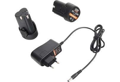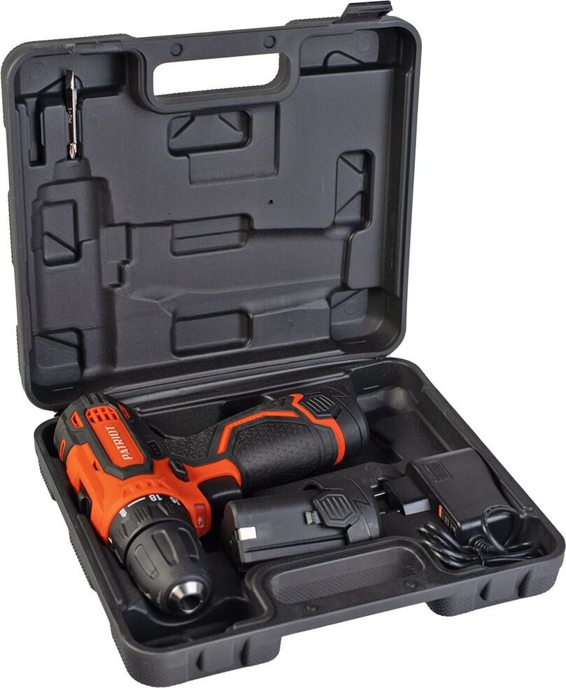 аккумуляторная дрель-шуруповерт 1шт., аккумуляторная батарея 2шт., зарядное устройство 1шт., набор сверл(2/2,5/3/4/5/6 мм) 6шт., набор бит(PZ1/PZ2/PH1/PH2/SL5/SL6) 6шт., магнитный держатель бит 1шт., кейс 1шт., инструкция с гарантийным талоном 1шт