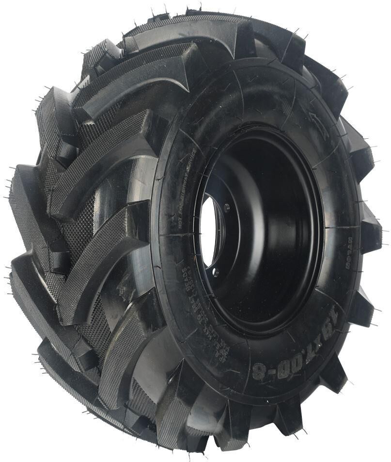 Пневматическое колесо левое PATRIOT P19x7.0-8D-1 Extreme для мотоблоков УРАЛ и УРАЛ M. Диаметр – 460 мм, ширина – 160 мм. Высокий тракторный протектор позволяет надежно цепляться даже за рыхлую почву. Используются вместе с поворотной ступицей СТП 23 или СТП 32 в зависимости от модели мотоблока.