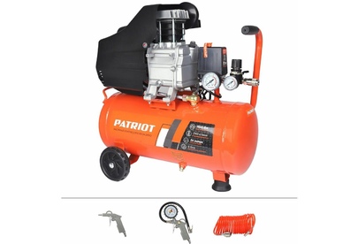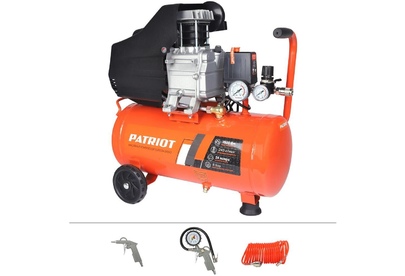 ! Колеса и амортизаторы, пневмоинструменты и воздушные фильтры в комплекте. Поршневой компрессор масляный PATRIOT EURO 24-240 K2 для пневмоинструмента. Коаксиальный компрессор для гаража подойдет для проведения сервисных, ремонтных, монтажных и строительных работ. В комплект поставки входит пистолет для накачки шин, пистолет для продувки, спиральный шланг. Компрессор воздушный масляный с давлением 8 бар оснащен двумя манометрами. Один из них показывает давление внутри ресивера, второй — давление на выходе.