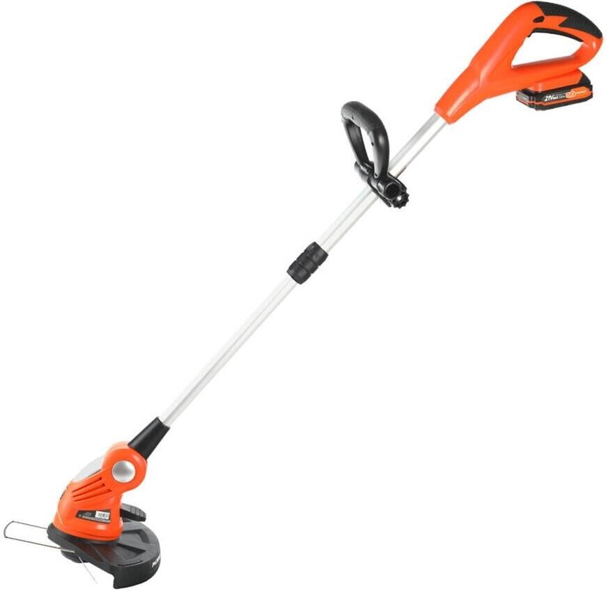 Тип двигателя: электрический. Расположение двигателя: нижнее. Форма штанги: прямая. Тип электропитания: от аккумулятора. Емкость аккумулятора: 2. Напряжение аккумулятора: 21. Тип аккумулятора: Li-Ion. Режущий элемент: леска. Диаметр круга стрижки: 26. Диаметр используемой лески: 1.2. Тип крепления триммера: отсутствует. Регулировка длины штанги: есть. Вес товара: 1.9. Комплект поставки: Триммер в сборе, рукоятка, защитный кожух, скоба защиты растений, фиксатор рукоятки, катушка с леской, инструкция по эксплуатации, аккумулятор, зарядное устройство для аккумулятора.. Обороты двигателя: 8000. Тип косильной катушки: автоматическая. Форма рукоятки: D-образная. Защитная скоба: есть. Регулировка угла наклона штанги: есть. Антивибрационная система: отсутствует. Тип штанги: неразборная штанга. Аккумулятор в комплекте: есть. Зарядное устройство в комплекте: есть. Уровень шума: 86. Габариты упаковки (ед) ДхШхВ: 0.97x0.215x0.12. Вес упаковки (ед): 3.27. Гарантия: 12 мес.. Аккумулятор: Li-Ion, 21 В, 2 Ач. Двигатель: элек