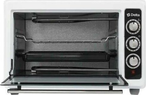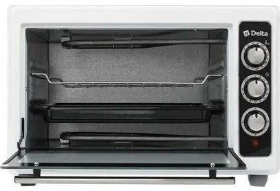 DELTA D-0123 белая Номинальная потребляемая мощность 1300 Вт Внутренний объем 37 л Тип нагревательного элемента ТЭН Количество ТЭНов 2 штуки Мощность ТЭНа 650 Вт Время разогрева до рабочей температуры 10 минут Регулируемый термостат 50-320°С Таймер 0-90 минут Размеры противня 36х34х3.5см Два ТЭНа повышенной мощности: верхний и нижний Специальное покрытие внутренней камеры концентрирует тепло, облегчает чистку и уход Дверца из термостойкого стекла Решетка Прямоугольный противень Регулируемая высота полки Световой индикатор работы Три режима работы Регулировка температуры от 50° до 320°С Функция автоотключения - отключение духовки по окончании времени приготовления Звуковое оповещение о конце приготовления Таймер на 90 минут